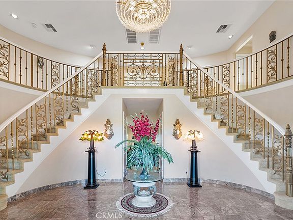 Stunning custom-built gated home in the prestigious Reche Canyon area with both mountain and city views. Upon entering the two-story estate with 5 bedrooms and 4.5 Bathrooms you will notice the grand marble entrance with dual staircases, and Romeo and Juliet Balconies. The kitchen is spacious and flows perfectly to the formal dining room, living room, and screened in sunroom. The Master bedroom has its own fireplace, and a huge closet, while the master bath features a grand jacuzzi, separate shower and bidet. The home is also equipped with an office with a relaxing private reading room and fireplace. Stepping outside, you’ll notice a gazebo with breath-taking 360 canyon views as well as a built in BBQ and entertainment area. The entire 5.98 acres is completely fenced in and comes with two additional buildable pads, a barn with a bathroom and potential living quarter, as well as RV parking with Hookups!! Despite the remote tranquility this property offers, it is still less than 15 minutes to Loma Linda University and Medical center as well as many other shopping and dinning opportunities!!