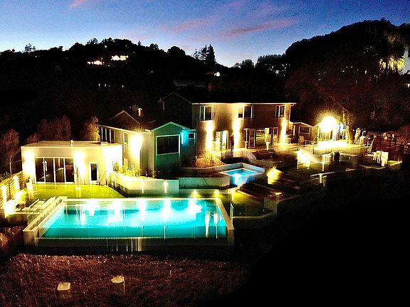 Enjoy a complete renovation inside and out plus the addition of resort-inspired amenities at this luxury home with sweeping views to the east, south, and west. The entire property has been transformed into sleek modern style with voluminous rooms and tremendous picture windows and glass doors to take full advantage of the views. Hardwood floors, recessed lighting, and crown moldings unify the spaces, which are all exceptionally light and bright. The living and dining room combination connects with a large family room perfect for media needs plus there is a dedicated office and a second office or ideal remote learning center. Outdoors, the grounds have been entirely transformed to include an infinity edge pool, spa, and barbecue center - all enhanced by vast decks with clear glass railings for optimum views and stretches of level lawns and play areas. Adding eco-friendly touches are synthetic lawn plus solar energy powered by two Tesla batteries.