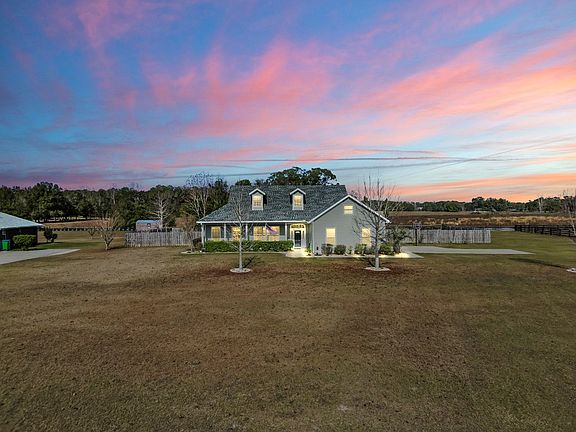 WELCOME HOME to Tillman Acres in the quaint, historic town of High Springs, FL. Situated on an over an acre, this 3 bedroom 2 bath home with split floor plan and two car garage is beautifully maintained and is move in ready. New roof in 2022 and new tile floors throughout. As you walk in the front door you are greeted by an expansive foyer leading to an open floor plan flooded with natural light. The recently updated kitchen features upgraded cabinets, new stainless steel appliances and an eating bar. Adjoining dining and living areas are perfect for entertaining or relaxing with family. The master bedroom suite features dual sinks, a jacuzzi tub, spacious walk in shower and large walk-in closet. Stepping out of the master bedroom, you find an open bonus room that can used for an office, playroom or whatever you desire. On the other side of the house are two bedrooms with private bath. A separate laundry room leads to a two car garage with it's own stainless steel refrigerator. Open the French doors and step out to your own tropical oasis. A large covered porch with ceiling fans perfect for outdoor dining overlooks an inground solar heated pool surrounded by majestic palms. The porch also features an outdoor bar and is wired and ready for a big screen to enjoy those fall football games! Or if stargazing is your thing, settle in around the firepit and enjoy the clear night skies. The fully fenced backyard includes an 800 sq. ft metal building with concrete floor, garage door and studded walls. Wired with 120/220 electric power, it is ready for a workshop, gym, storage or whatever your needs. In addition, there is an adjacent metal carport large enough for a boat, RV or other toys. Tillman Acres is a low-key golf cart friendly neighborhood just minutes away from boutique shopping, farm to table dining, local breweries, antiques and so much more. High Springs is known as the “Gateway to the Springs” including Ginnie Springs, Poe Springs and Blue Springs for snorkeling, scuba diving, paddle boarding and tubing. Kayak or canoe down the adjacent Sante Fe River. High Springs Community School is one of the highest rated public schools in Alachua County. Only a short drive to Gainesville. This one won't last long! Don't miss your opportunity.