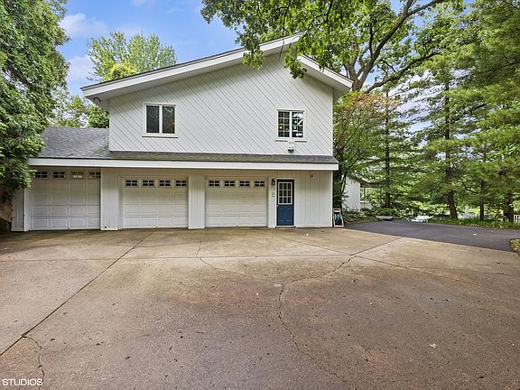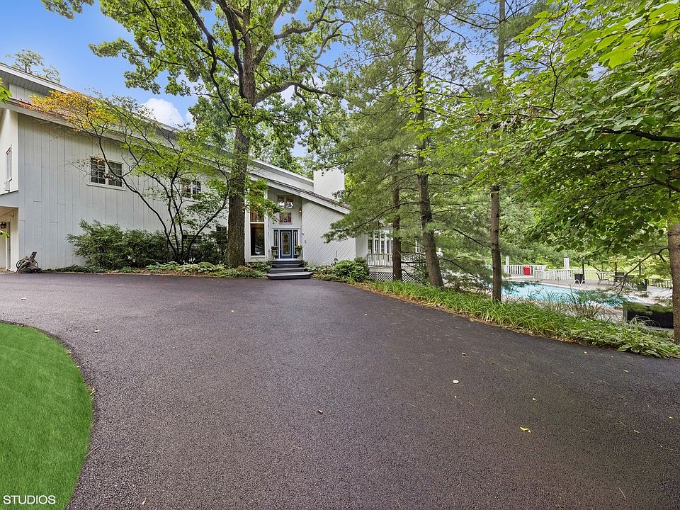 This 4,600 sq. ft. CUSTOM 5 BEDROOM 3.5 BATH 3 CAR attached garage with an extra 1 CAR detached GARAGE home is truly ONE OF A KIND! There isn't another like it! It's situated on 3.73 acres with access to the Dupage River! WROUGHT IRON gates lead you to your large PRIVATE CIRCLE driveway. Maintenance free TREX stairs bring you to your front door that is lined by glass windows! Walk in to your FOYER featuring a CHANDELIER and OAK BEAMS! MAIN floor features an OFFICE, DINING ROOM, LIVING ROOM with OAK BEAMS and 2 story WOOD BURNING fireplace, LARGE KITCHEN with an ISLAND & built-in DESK, 1/2 BATH, MUDROOM/LAUNDRY ROOM, LARGE STORAGE ROOM ~ 2nd floor PRIMARY bedroom features HIS/HERs closets, BALCONY, full luxury bathroom - whirlpool tub, separate shower, double sink vanity with a separate make-up vanity, huge skylight lets in tons of light. Separate room attached to the primary bedroom (possibly a nursery or 2nd floor office) has BUILT-INs and large windows! ONE of the other SPACIOUS 4 bedrooms on the 2nd floor feature its own PRIVATE FULL BATHROOM. Upstairs also features a LOFT area that has a wood burning fireplace, WOOD BEAMS and another FULL BATHROOM. Outside on this magnificent property is a 1 car detached garage featuring a GREENHOUSE and upstairs hang out or could be used for more storage. Beautiful kidney shaped INGROUND POOL is surrounded by a huge deck and pergola. TONS of BEAUTIFUL MATURE TREES! This home is meant for entertaining! You will not find another property in the area with this much land so close to all amenities of SHOREWOOD. Remodeled in 2002. Home is being sold AS-IS.
