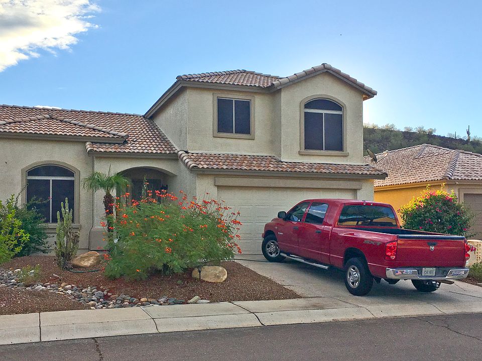 Beautiful Mountain Views!! Tri-level, Single family home, 3 bedrooms and 2.5 baths. Newer A/C., Newer Hot Water Heater, 2 car garage with built in storage. New Interior full paint completed plus new carpet throughout the home. Cathedral ceilings and arches galore! Large gourmet kitchen with island - all Granite. Washer, Dryer, and Refrigerator are included. No one can build behind this property. Spectacular mountain/open desert views from the back yard and upstairs balcony from the master bedroom. Very peaceful back yard is bi-level, with the mountain sloping down to the yard w/retaining wall. Oversized covered patio with travertine pavers. You will not find another home at this price with these mountain views. Minutes to 101 & I17 freeways, Top Rates Schools and Shopping.