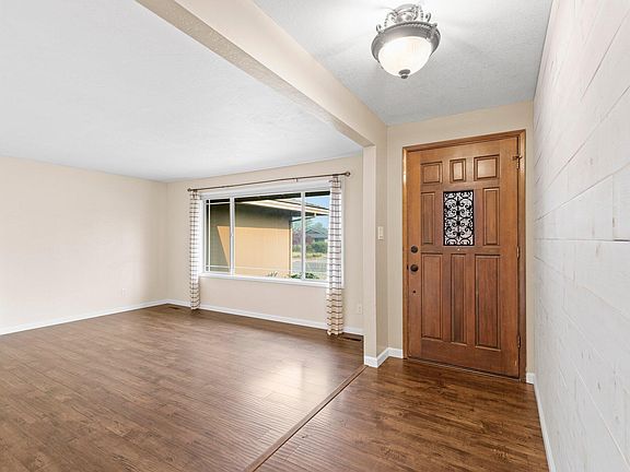 Beautiful home in a quiet East Medford neighborhood. This 3 bedroom 2 bath home is updated with engineered hardwood floors in the living areas and carpet in the bedrooms. The family room features a gas burning fireplace with brick surround. The kitchen has stone tile counters with tile backsplash as well as tile flooring. Bathrooms are updated with tile flooring, tile shower surround and updated vanities. Laundry room features a sink and storage cabinets as well as a large pantry. The large back yard features a covered patio along with a small tool shed and timed irrigation. Updates include all new windows within the last 5 years and new heating and cooling ducting within the last 10 years. This house is ready to move in.