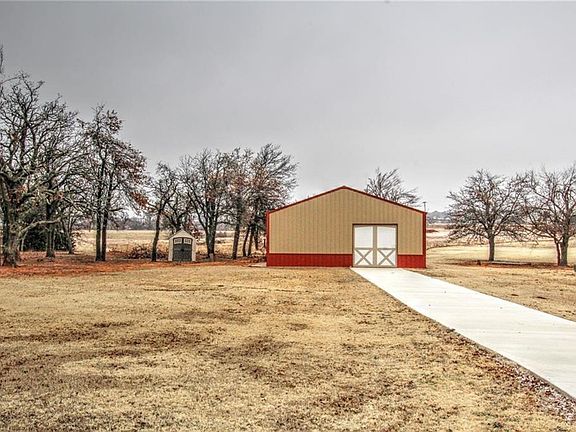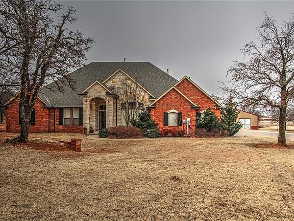 Stunning home in a cul-de-sac, with a wooded lot, in the well sought after Oakmont addition. Easy access off and on the highway, whether you are going to OKC, Chickasha, and or Norman. This home boasts a welcoming foyer with a built in hutch, 3 Bedrooms (large bedrooms), 2.5 baths, one living, one breakfast nook, one formal dining, one bonus room (with custom built in cabinetry and entertainment area, a closet, bar area, and half bath), and one of the largest laundry rooms you have ever seen with custom cabinetry, lots of storage and abundant counter space. Granite countertops in kitchen, island, and pantry in kitchen, plus beautiful stained woodwork throughout, including doors. It has a 3 car garage (some taken up by staircase/ storage area), a large 36 by 40 insulated shop, 12 ft walls, with overhead 10 by 10 electric door, and side entry door, plus a small storage shed. Updated camera system, new dishwasher, new hot water tanks (one elec. and one gas), new water softener.