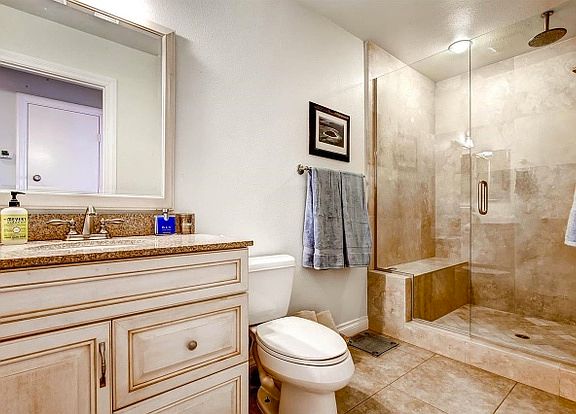 Live the Cardiff dream! Gorgeous townhome in Cardiff by the Sea. Rare 2 Bed / 2 Full Baths! Over 90K in renovations. New double pane windows, white plantation shutters, complete new kitchen with large island. Beautiful granite handpicked from slab. New kitchen cabinets with glass fronts. Top notch GE stainless appliances. Cool to the touch tiled floors. Enlarged upstairs bathroom with oversized tiled shower. Full bath lower level. One car attached garage with additional parking. Beautiful mountain and pool view from the master. Located in quiet coastal area away from freeway and next to the pool. Zen patio opens up to lush green open space. Great school district! Close to beach, restaurants and Seaside Market! BY APPOINTMENT ONLY.