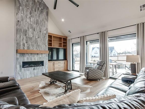 Stunning Modern Home in Goldsby! Welcome to this exquisite 4-bedroom, 3.5-bathroom home. As you step inside, you’ll be immediately captivated by the vaulted ceilings and the striking floor-to-ceiling fireplace that serves as the focal point of the spacious living areas. The open-concept layout features two expansive living spaces, perfect for both relaxing and entertaining. The heart of the home is the chef-inspired kitchen, featuring a large island, granite countertops, stunning backsplashes, and top-of-the-line fixtures. Whether you're hosting a dinner party or preparing a quiet meal, this kitchen offers the perfect balance of style and function. A walk-in pantry provides ample storage for all your culinary essentials. The master suite is a true retreat, with a luxurious walk-in closet, and a spa-like master bath complete with dual vanities, a deep soaker tub, and a sleek walk-in shower. Every detail has been thoughtfully designed for ultimate relaxation. Large windows throughout the home flood the space with natural light, enhancing the inviting and open atmosphere. The Florida windows in the living room open up, providing a walkway directly to the patio where you'll find a cozy fireplace—ideal for enjoying evenings with family and friends. This home also features a 4-car garage with direct access to the backyard, offering plenty of space for vehicles and storage. The covered front porch adds to the home’s curb appeal and provides an ideal space to unwind. Located in a vibrant community, this home is just steps away from the neighborhood clubhouse, which boasts a full basketball court, gym, and an event space, perfect for hosting gatherings and enjoying outdoor activities. With gorgeous finishes, modern touches, and ample space to live, work, and play, this home is the perfect combination of luxury and practicality. Don’t miss the opportunity to make this stunning property your new home. Contact us today to schedule a tour!