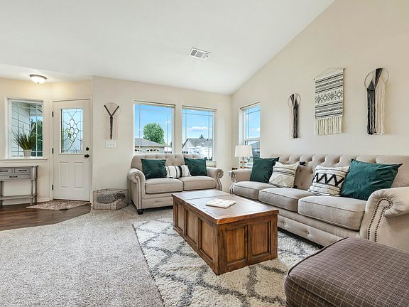A home built for entertaining in a great neighborhood! As you enter the home, you're immediately greeted by a front family room with vaulted ceilings that's perfect for your Super Bowl parties. The family room leads right into the kitchen and dining area, all of which are open and spacious, with a living room with gas fireplace in the back for quieter evenings. A huge backyard with a small patio and large RV parking gives you room to turn it into whatever you can imagine: extend and cover the patio, add an outdoor kitchen, plant a garden in the generous side yard, or do all three with room to spare! At the end of the day, go back inside through the patio access to the master bedroom, where the vaulted ceilings continue and give you plenty of space to relax, and a good-sized master bathroom keep you from being crowded. An indoor laundry room, finished garage, and comfortable guest rooms round out this turn-key home that is spacious and comfortable.