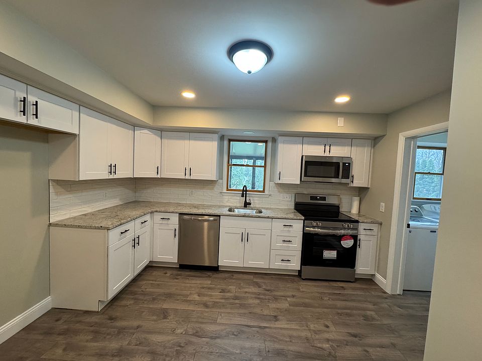 Completely remodeled two story home on a nice quiet street in the suburbs of Reading. The 3bd/1.5ba home sits on a 1/3 acre corner lot just off River Road in a great neighborhood. The home was just painted, new flooring, new kitchen cabinets with granite countertops and brand new appliances. The home also has a spacious 2 car garage, enclosed back porch and deck. Term of lease is one year after which it goes month to month. Tenant is responsible for electricity and oil heat. Water, Sewer and Trash are included in the monthly rent.