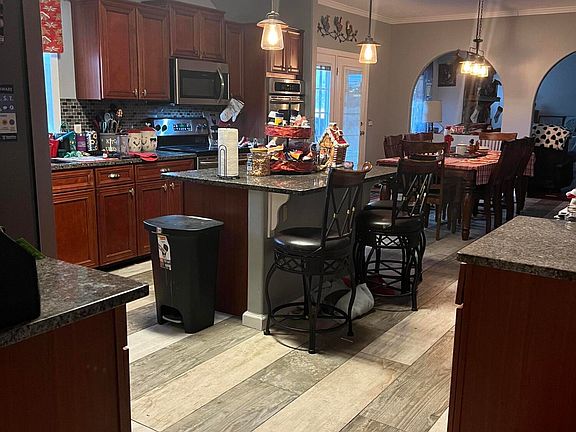 - Separate Living Quarters, Pantry, Open Floorplan, Kitchen Island, Granite Counters, Bathroom Mirror(s), Ceiling Fan(s), Crown Molding