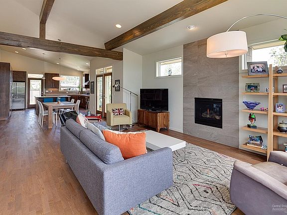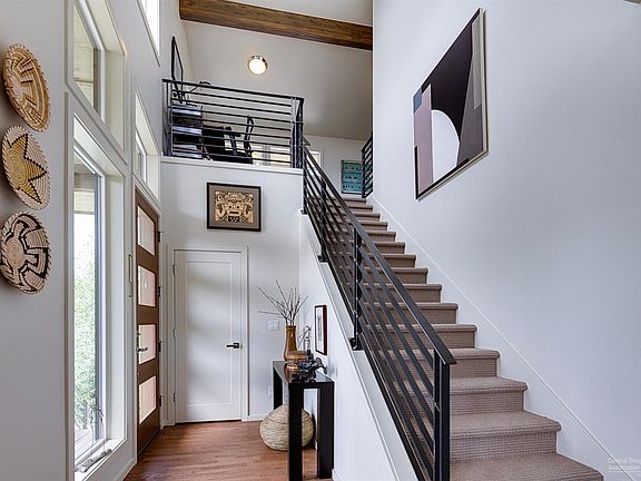 Enjoy this light-filled midcentury modern home in NorthWest crossing. Main level living features master suite with walk in closets, shower/tub combo, guest bath, gourmet kitchen, living area and garage. Lower level space is ideal for a second master suite, guest area, home office or bonus room. Upper floor consists of second living area with wonderful views of the rim rock park across the street, two bedrooms and a full bath.