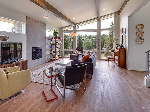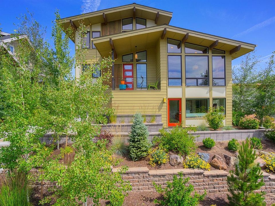 Enjoy this light-filled midcentury modern home in NorthWest crossing. Main level living features master suite with walk in closets, shower/tub combo, guest bath, gourmet kitchen, living area and garage. Lower level space is ideal for a second master suite, guest area, home office or bonus room. Upper floor consists of second living area with wonderful views of the rim rock park across the street, two bedrooms and a full bath.