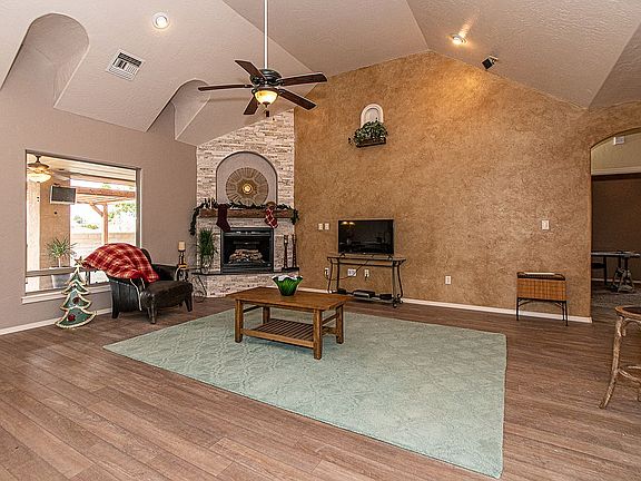Excellence in Design & Craftsmanship! Custom built home in Golf Course area. 4 boastful bdrms, 3 bthrms & a 3-car garage. Granite countertops throughout, spacious modern kitchen, Talley cabinets, accent lighting, stainless steel appliances & pantry, central vac, surround sound, & security system. Oversized mstr bdrm with two walk-in closets. Deluxe mstr bath with jet tub, TV & double sinks, 2 walk-in closets in 2 bdrms. Incredible outdoor covered living with fans/spkrs/wd frplce, ss grill/bar & pergola