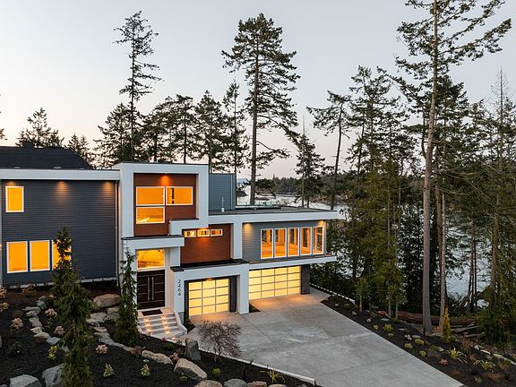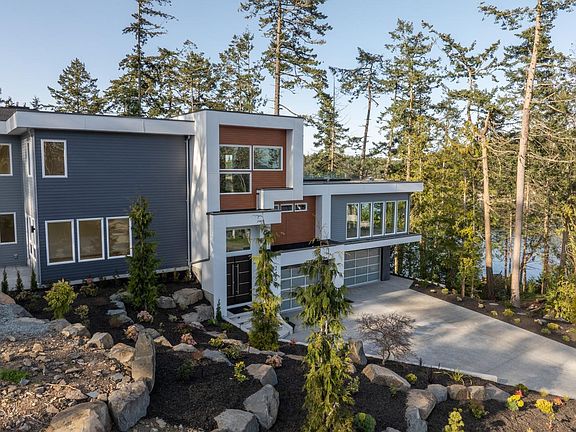 This stunning oceanfront, custom designed estate embodies West Coast style and architecture. With an open floor plan and soaring ceilings, the interior exudes sophistication. The home offers 4 bedrooms, and 5 bathrooms crafted to highlight sweeping views of the ocean, mountains and islands. The chef's kitchen is equipped with custom cabinets, a full pantry, stone counters and a spacious island. A formal dining room, complete with a double-sided statement fireplace, flows into the expansive living area where floor-to-ceiling windows frame breathtaking views. The primary suite offers a stunning view featuring a luxurious 5-piece ensuite with its own walkout balcony for enjoying your morning coffee. The lower level showcases a stunning wine room and a spacious walk-out mudroom. The easy-care yard, triple car garage and landscaped grounds offer direct access to the waterfront, making this a boaters' and kayakers' dream property.