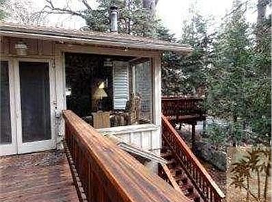 Fern Valley chalet with cathedral ceilings, perched above the street with views of Lily Rock and Suicide Rock! Light and bright open floor plan with two bedrooms, two baths and office on the main floor. Extensive decking, fully fenced yard with pull through driveway. Downstairs Guest Quarters with separate entry and connecting staircase to upstairs for convenience. This is one Idyllwild's finest neighborhoods.