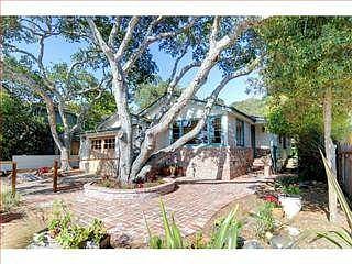 Captivating Carmel Cottage. If you have been dreaming of a wonderful second home in Carmel, or a starter home this is it! Granite countertops, hardwood floors, charming fireplace, gas stove, microwave, refrigerator and washer & dryer. Window coverings operate with the touch of a finger. Lovely brick patio in the front of the house is fully fenced, nice deck and outdoor spaces plus room to grow.