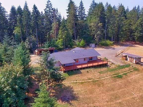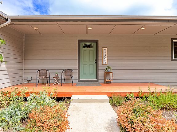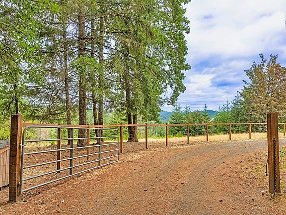 Find peaceful living at 24645 Butler Rd. in Junction City, Oregon. Attention big view lovers, hikers, homesteaders, and just want to get out of towners! This sensibly sized pristine home sits on 13 serene acres, mostly forested, and ready for your homestead to thrive. Inside, you’ll find an open floorplan with vaulted ceilings and an abundance of windows that highlight the natural beauty of the surrounding mountain and valley views. The spacious primary bedroom features an ensuite bathroom with a large soaking tub, plus a walk-in shower and double sinks. At the opposite end of the home, you’ll find two additional bedrooms and a guest bath creating a nice separation of living space. The modern kitchen and oversized island gives the heart of the home a real “wow-factor”. A large corner pantry and beautiful bright Quartz countertops make this space striking and practical. Enjoy private views from every window and immerse yourself in nature when you step onto the impressive covered back deck. Views of the maturing timber and beyond provide a tranquil retreat at your doorstep. The timberland features several maintained hiking trails and a natural freshwater spring. Harness the homestead potential and bring goats, chickens, or other livestock and tend to the multiple garden areas, or, settle down with easy living and let the natural landscape take care of itself. Just 10 miles from the nearest grocery store and less than 20 miles from Eugene, this location provides a breath of fresh air without yielding the amenities of town.