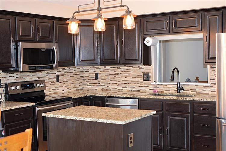 • Kitchen/Features: Counter-SolidSurface, Island, Cabinets-Wood, Counter-Granite