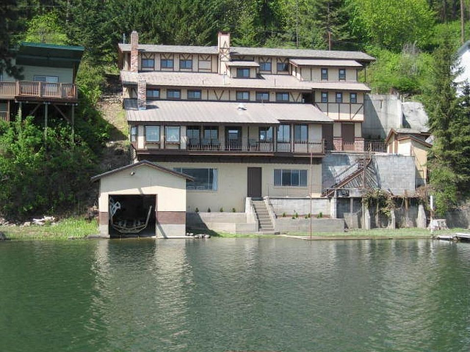 Coeur d'Alene Lake, Cottonwood Bay, 100' Frontage, 4 bdrms, 3 baths, 2924 sq. ft, multiple level cabin, oversized garage/shop, 250 sq.ft boat garage at water, dock