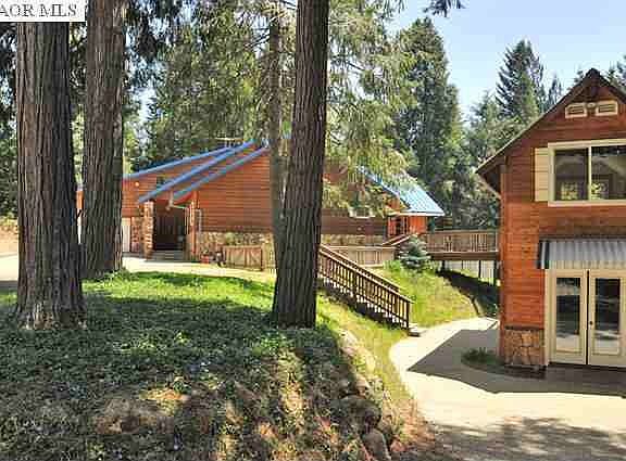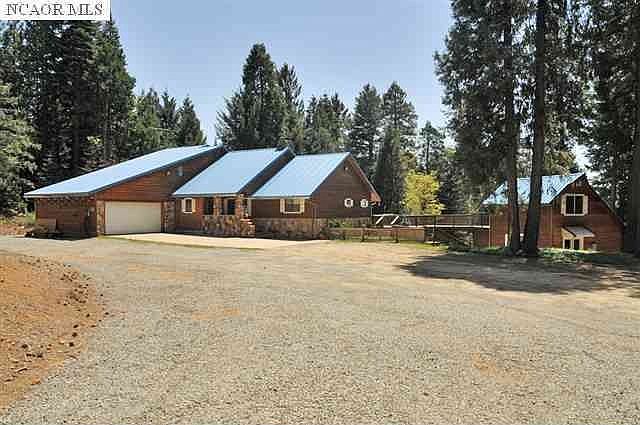 Mountain Retreat Home on 10+ forested acres with views of Scotts Flat Lake. Quality cedar style home with day to day living on the main level, open floor plan with great room & vaulted open beam ceilings, granite counters & maple cabinets. Wolf range, stainless steel appliances, sub zero refrigerator & tile & hardwood floors. Mud room entry, large rock wall in living room, huge trex-like decks. Yard is beautiful & has room to park RV, Boats & other toys. Great well & access to Pioneer Trail. Separate master suite. Detached 850 two story guest house. 4 distinct seasons. Large new shop.