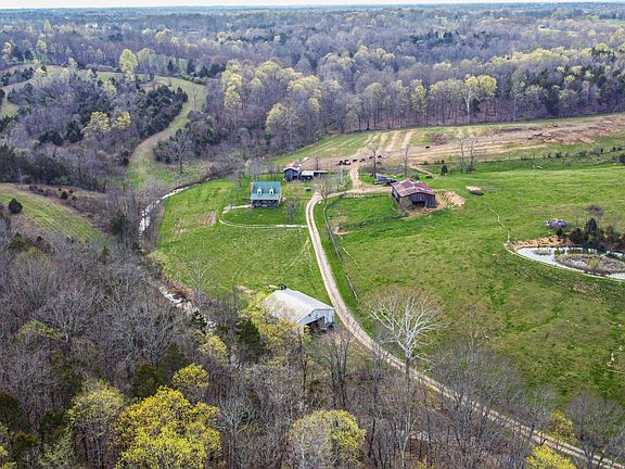 Once turning in and crossing the bridge over Pigeon Creek, the sycamore trees along the driveway and green pastures will overwhelm you as you travel into this beautiful setting. The modern country farmhouse awaits you in the center of this large acreage property surrounded by all the amenities needed to accommodate a working farm. Complete with nearly 1800 square feet of living space and an unfinished walkout basement, this spacious home has the capability to provide most all of your family's needs. Its open floor plan with great room and connecting kitchen give that country feel with an added modern touch. The oversized front porch and back deck invite a relaxing sit while enjoying the secluded views and wildlife this property holds. Three large barns are located on the farm allowing for more than enough equipment storage and livestock space. Approximately twenty acres of its open areas are fenced and are currently leased to graze cattle. Significant tillable areas reside along the northern creek bottom and lengthy road frontage. For those looking for that dream farm that checks all the boxes and then some, don't hesitate to give this one a look!