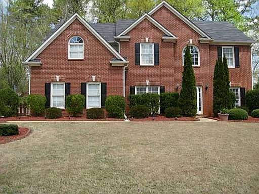 Brick front, 3 sided hardi-plank home in great swim/tennis neighborhood minutes from Avalon, North Point Mall. Two story foyer and family room with soaring ceilings. Tray ceilings in dining room and master bedroom. Abundance of dual-paned windows provide natural light, keep house comfortable. Large, eat-in kitchen renovated 2013 includes island, granite countertops, stainless steel appliances, recessed lights, large pantry. Hardwood floors added on main floor 2013. Oversized master bedroom retreat with two large walk-in closets plus spa-like, large master bathroom renovated 2014 with travertine tile, upgraded dual-sink designer vanity with 9 drawers for storage and over 8 feet of high-quality granite countertops, glass enclosed walk-in shower with dual showerheads and overhead heater, garden soaker tub, dedicated linen closet, separate commode. Dual-access staircases merge to catwalk spanning width of family room below. Under stair closet provides climate-controlled storage. Separate laundry room with cabinets. Ceiling fans throughout. New roof 2014. Fenced in backyard backs to treed area for added privacy. Large front lawn. Alarm system.