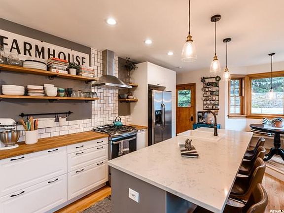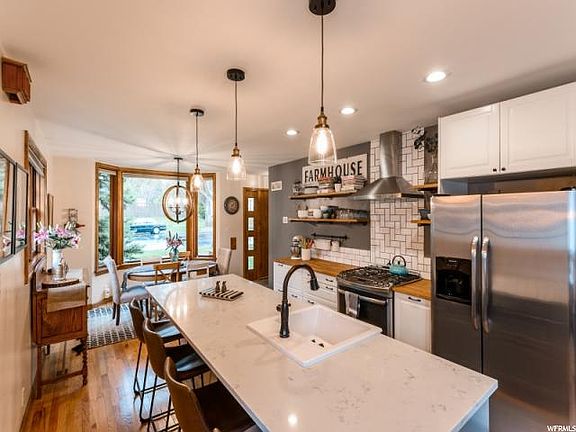 Rare find east bench two story; double car garage , three large large bedrooms, two full baths upstairs, new kitchen, gas range, tons of storage, breakfast nook, huge island! Updated windows and flooring throughout, huge mudroom, workbenches, fully fenced. Character beyond belief!! Move in and relax