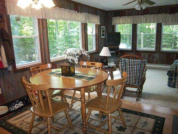 Northwoods charmer with deeded access and pier across the road. Nicely wooded double lot, with garage and custom three bedroom home. Many rustic barn board accents give this home a very unique look and feel that you can enjoy warming up by the free standing wood fireplace or you may enjoy sitting around the fire pit with the sounds of the Northwoods. This is a private area, that is mainly quiet with no through traffic but yet a stone's throw from the lake. A rustic circle loop on your property allows for easy boat or sled parking without interfering with access the home.