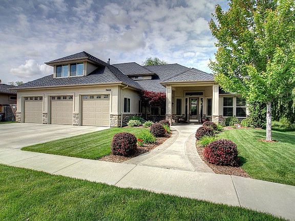 Don t let Boise Ave scare you. Very private setting, set far back & no sight of Boise Ave. Premiere and private homesite in highly sought after Bown Crossing. Beautiful backyard with a natural pond, creek & the sound of a peaceful waterfall. Exceptional interior has a warm & inviting great room with timeless plantation shutters and a perfect place for a baby grand piano or cozy nook. Main level master has access to the patio and features a spa like master bath suite. The kitchen is an entertainers dream