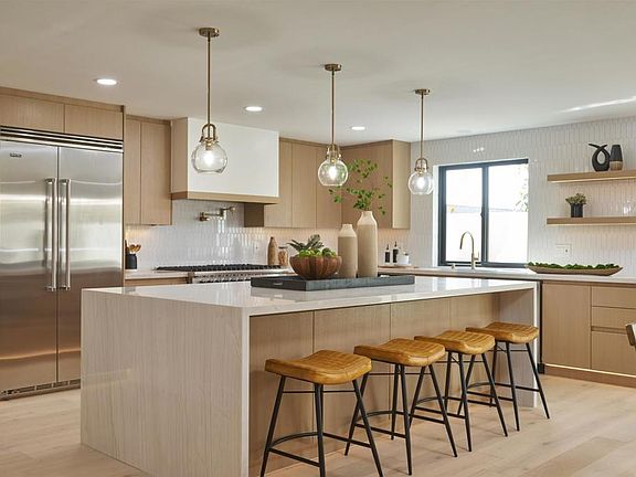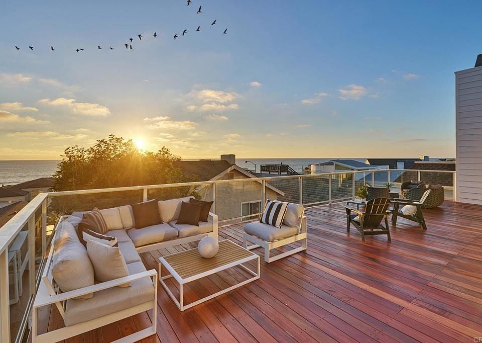 The neighbor owns the air rights to the one story home behind the subject property to preserve the ocean views!! Please ask listing agent for more details. Completely reimagined from top to bottom, this beyond-stunning residence offers a rare blend of coastal sophistication and modern design, all in one of Carlsbad’s most desirable locations. Every inch of the home has been meticulously updated with high-end finishes and thoughtful detail, creating a truly turnkey experience. At the heart of the home lies an incredible chef’s kitchen that rivals any professional setup. Anchored by an oversized island with waterfall-edge quartzite countertops, it features a full suite of Viking appliances—including a built-in refrigerator, dual-oven 8-burner range—making it as functional as it is beautiful. New custom cabinetry and Delta fixtures complement the space, while Fleetwood exterior sliding doors invite natural light and effortless indoor-outdoor flow. The kitchen opens to the main living and dining areas, where engineered hardwood flooring, a sleek fireplace, and a stylish built-in bar with a wine fridge create an inviting setting for everyday living and entertaining. The first floor includes two spacious bedrooms, each with its own en suite bath, offering comfort and privacy for family or guests. The second level is dedicated to the primary suite, a true sanctuary showcasing a vaulted, wood-clad ceiling with a large skylight—bringing warmth, texture, and an airy coastal feel. The spa-inspired bathroom impresses with a custom-built vanity, quartzite counters, and Delta fixtures, along with an oversized walk-in shower and freestanding soaking tub. A separate custom-designed walk-in closet provides beautifully organized storage for an elevated everyday experience. On this level, you’ll also find a finished bonus room, ideal as a kids’ playroom, creative space, or additional storage. Every one of the four bedrooms includes its own en suite bath, each featuring quartzite or marble countertops and refined designer finishes, while three-panel shaker doors add a consistent sense of modern craftsmanship throughout the interior. The home also includes a new air conditioning and furnace system with multi-zone capability and Anderson Fiberx windows that enhance both energy efficiency and aesthetic appeal. On the uppermost level, discover a show stopping entertaining room where vaulted, beam-accented ceilings and expansive glass doors frame breathtaking ocean views. Designed for effortless gatherings, this sophisticated retreat offers multiple seating areas and a built-in counter with beverage fridge—perfect for sunset cocktails or relaxed weekend lounging. Step through the Fleetwood sliders to a 600+ sq. ft. deck with new wood decking, where the Pacific Ocean provides a cinematic backdrop for unforgettable evenings under the open sky. Located just blocks from the beach and the heart of Carlsbad Village, this home puts coastal living at your doorstep—enjoy morning walks along the sand, boutique shopping, top-rated dining, and the relaxed charm that defines this seaside community. Combining exceptional craftsmanship, thoughtful design, and a premier coastal location, 2465 Garfield stands as a showcase of modern Carlsbad living—offering a rare opportunity to own a home that is as functional as it is unforgettable.