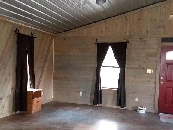 BRAND NEW home on 2.25 acres with unique country decor that will qualify for FHA, USDA & VA Financing! Stained concrete floor throughout with tongue & groove pine walls. Gorgeous cast iron wood heater accented with stone behind it is the centerpiece of the living room. The open floor plan, horseshoe rod hangers, burlap curtains and metal ceilings adds to its rustic country charm. Covered front porch features cedar posts and a metal roof, while the rest of the home has architectural shingles. Unique touches in the master bath include a vintage pan sink & unique metal bathtub. Metal 2-car carport/workshop has electric. East part of property is wooded with scattered trees in the yard. Deer plot area in place for the hunters. Very nice rural home with plenty of peace & quiet to enjoy.
