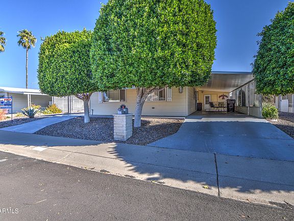 An updated manufactured home in the sought after adult community, Apache Wells. 2 BR, 2 BA no hallway. Lives bigger then the square footage show. Both baths have newer vanities and tub/shower. Master has a step in shower. Textured paneling in main living areas. Roof about a year old, newer A/C and heating. Set appointment to see. Professional photos coming soon!Please give seller a 1 hour window to show.