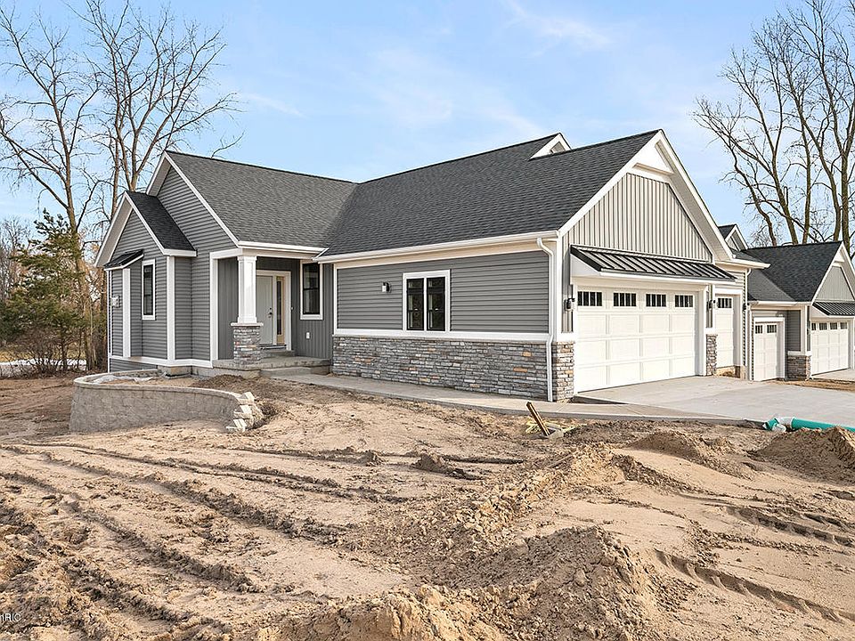 This listing is under construction and includes a 3-car garage. Photos are of partially completed units and are for illustration of design & finish quality only. Still time to make interior selections. Ravines at Railside is an exciting new luxury condo development in Byron Center w/floor plans starting at $349,900. It includes 42 side-by-side, high-end units immediately adjacent to Railside Golf Club. Features golf cart path access to the club w/membership (1st year social membership included) & rare industry option of 3rd garage stall. Quality construction by Berkenpas Development w/25 years+ of experience building condos. High-end standard features include: custom quality cabinetry, quartz countertops, ceramic & premium engineered wood flooring; low maintenance exteriors w/Andersen Low-E windows, cultured stone, premium vinyl siding, PVC trim, & architectural shingles with standing seam metal roof detail. Weekly Open Houses: Monday & Wednesday 1:30 - 5:30 PM; Friday 1:30 - 4:30 PM.