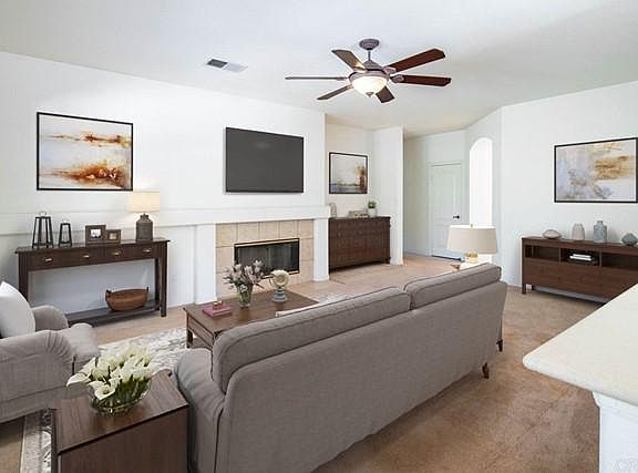 West end location and easy access down the hill. 4 bedroom 3 bath, 2586 square feet, single level home in Holly Oaks. Features include formal living and dining room, family room with cozy fireplace and jack and jill bathrooms. Solid surface kitchen countertops. 4th room is a flex room (Bedroom/office). Primary bedroom outfitted with a jacuzzi tub and huge walk in closet. Covered patio with with great evening breezes, beautiful mature oaks, boulders and artists studio with electricity and water. Horse wash rack and tack area, plenty of room for horses. Access to the back of the property with a bit of imagination. Contractor bid available upon request. All appliances convey. Newer exterior paint, brand new water heater, water softener, 3 car garage. No designated open space. Enjoy hiking and horseback riding in Holly Oaks in the 25 acre park and Luelf Pond County Preserve.