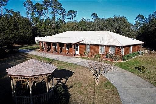 Incredible custom-built log home on over 2 acres! NO HOA!!!! Very well maintained with spacious rooms and a family friendly floor plan that includes 2 MASTER SUITES! Perfect plan for extended families or the in-laws! There is a LARGE, OPEN kitchen with stone countertops and solid wood cabinets and large eating area that flows out to screened in lanai and inground pool area. Gorgeous stone gas fireplace in the family room that features a cozy bar and soaring ceilings for entertaining. Family room also has french doors leading to screened pool and lanai. Two HUGE master suites!! Formal living and dining rooms add comfortable areas for entertaining. Energy efficient double pane windows, and newer CHA makes this home energy wise. Three car garage has work shop and heated and cooled office area. Lot is over 2 acres with plenty of room to store boats and RV's. You can feel the love in this home. Large but still cozy. Ready to move in as empty nesters move out! Privacy and peace can be enjoyed on this piece of paradise! Come check out this awesome property while it lasts! Horses Okay!