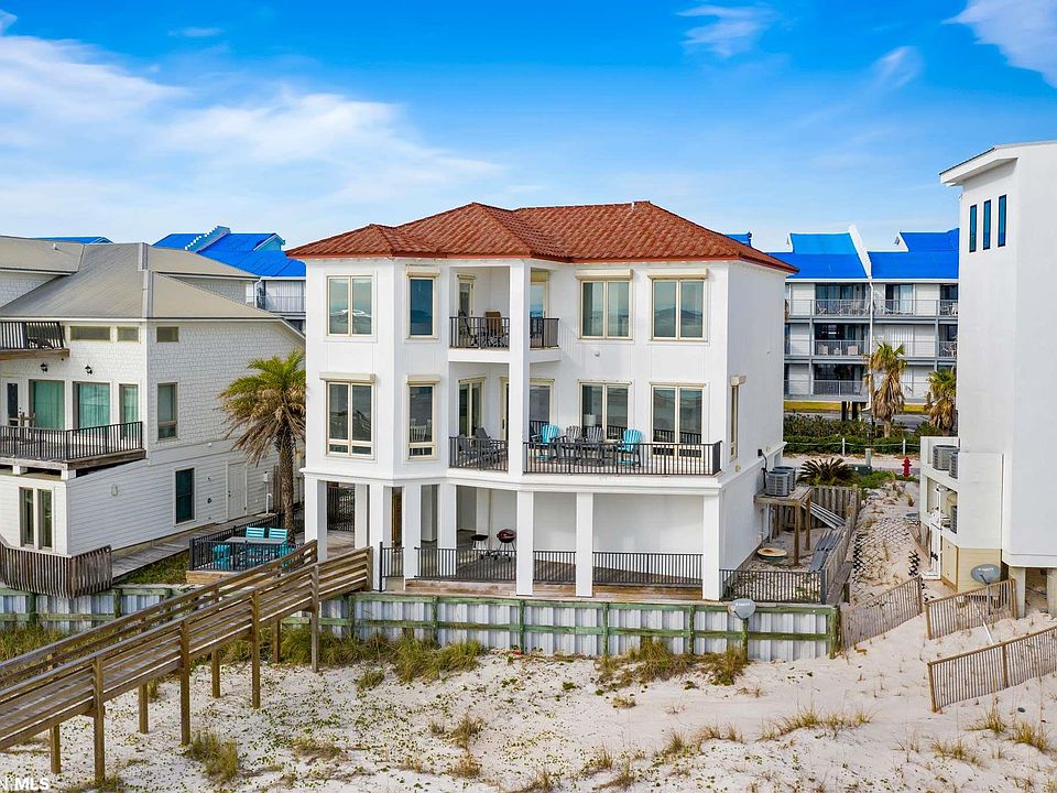 "CROSSLANE COTTAGE" Check out this newly renovated Gulf Front home in Orange Beach, Al. Enjoy the amazing direct views of the beach and Gulf. Hardwood and tile floors in all common areas with new carpet in the bedrooms. Beautiful new counter tops in the kitchen and updated bathrooms. Built beyond the standards, has a fire sprinkler system, highly upgraded insulation & windows and terracotta look roof. Home has new paint on exterior and all interior. The 5th bath is off the bottom floor patio (inside commode & sink with outdoor shower). New boardwalk is built from home to beach. Large 2 car garage on the ground floor.