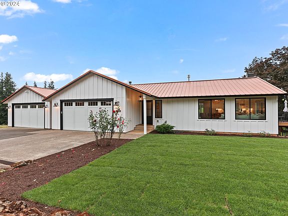 Gorgeous contemporary completely remodeled on 5.75 acres. As you step inside you are blown away by the open concept floorplan and the abundance of natural light. With high-end finishes throughout and great attention to detail rarely experienced, you will not be disappointed regardless of your expectations. The gourmet kitchen and spacious, vaulted great room are perfect for entertainment or spending time with the family. The primary suite on the main level will remind you of your favorite spa. Stepping downstairs to the daylight basement is another moment of amazement. A large family room, adjacent wet bar and roomy hot-tub are the perfect spots to unwind after a long day. All of this, plus over 5 acres of land to explore to use as you wish. Ideally located with easy access to I-5, I-205, shopping, restaurants and so much more. A True Must See!!