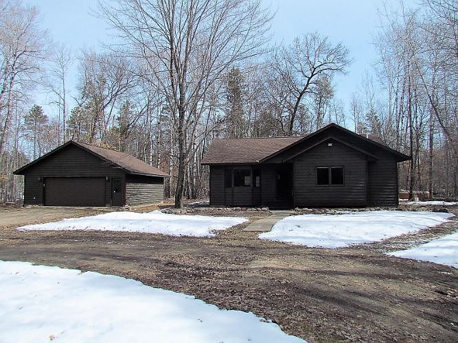 Well kept one level home with 2 bedrooms, 2 baths, porch, vaulted ceilings and a 2 car garage sitting on over 2 acres with privacy that abuts the Paul Bunyan Trail.