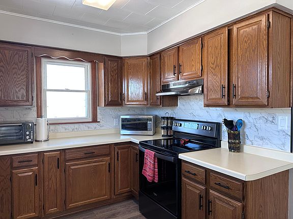 Country living on blacktop road. Beautiful updated home on 2.5 acres, surrounded by trees. Home features new dishwasher, range, range hood, laminate floors, lighting and fresh paint. Main floor bedroom and larger bedroom upstairs with hardwood floors and double closets. Open block and concrete basement with large bathroom. Property offers 22x40 detached 3 stall garage, 20x30 barn & 15x24 granary/storage shed. New roof on home in 2022. Check out this great hobby farm.