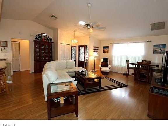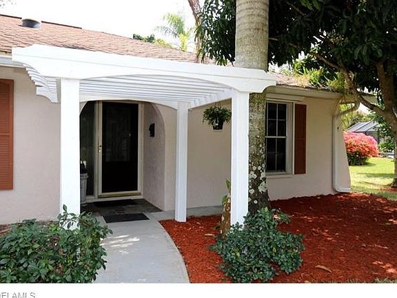 Enjoy a back yard oasis offering many tropical fruit trees including citrus and mango, mature landscaping plus a koi pond. This ranch/one level home offers a great room floor plan with split bedrooms plus an interior laundry room, two car garage and lanai. Upgraded features of this home include stainless kitchen appliances, roll down security/storm shutters and sliding door/glassed in lanai. The roof was replaced in 2006. Best of all, this home is located outside of the flood hazard zone so flood insurance is not required and insurance costs are lower. This well-kept concrete block home is located in the quiet, popular area of Bonita Golf and Country Club, a mildly deed restricted, non-gated area with very low homeowner association fees of only $50 per year! Local popular conveniences are only minutes away - ten minutes to Coconut Point Mall, seven minutes to Riverside Park, and about 15 minutes to Bonita Beach. There is a well for lawn irrigation. Both city water and sewer with assessments paid. Washer/dryer do not convey. For more information contact the listing agent, Chris Griffith 239-273-7430 call/text. You can also visit her website at www.LifeInBonitaSprings.com