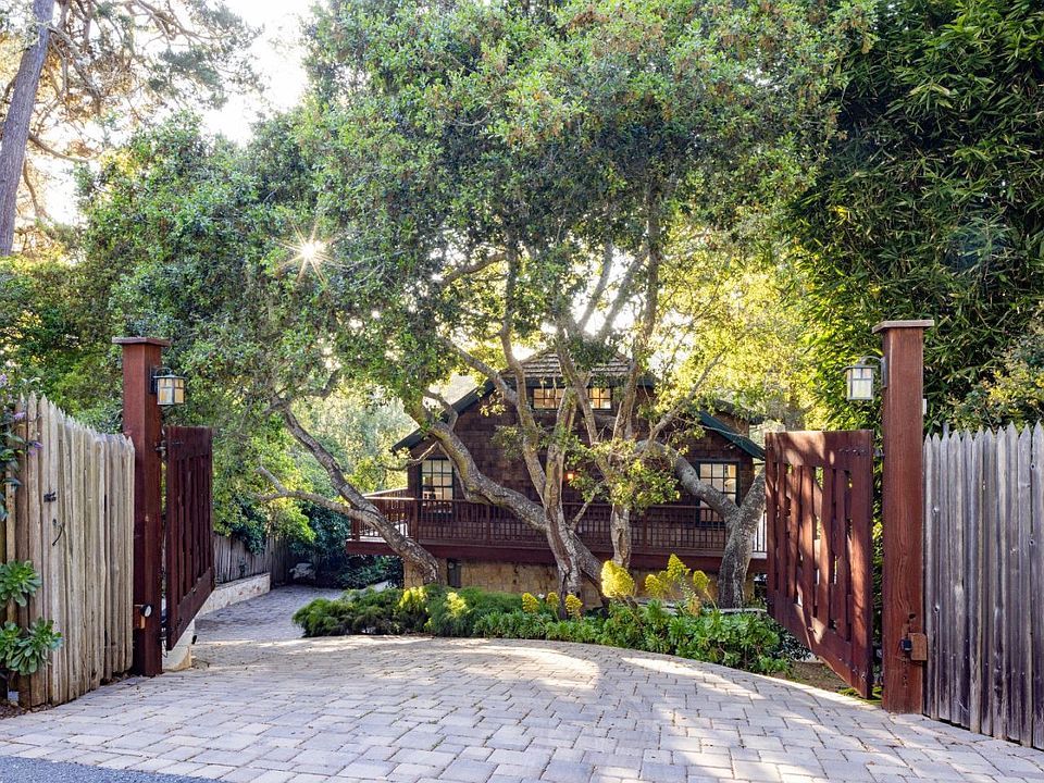 A Big Sur feeling greets you on this wooded setting with a custom built electric gate. The exterior of stone and wood invite you into this craftsman style home. Hardwood floors, unique granite countertops and two unique fireplaces are earmarks of the main floor. The kitchen and breakfast area are of a generous size and open out to a sun-drenched patio. The living/dining room features spacious picture windows with forest views. There are three bedrooms and two baths on the main floor, one of which is being used as a custom fitted office. Downstairs there are two more bedrooms, one with access to the wrap around stone patio overlooking the forest. A top floor studio of over 600 sq. ft. provides space for a home office/family room or artist studio. And its just a few blocks to the center of town.
