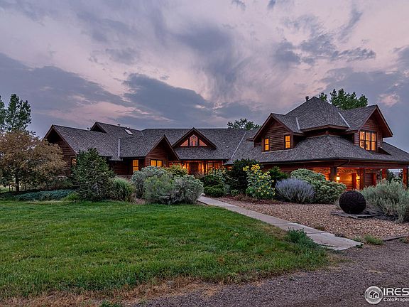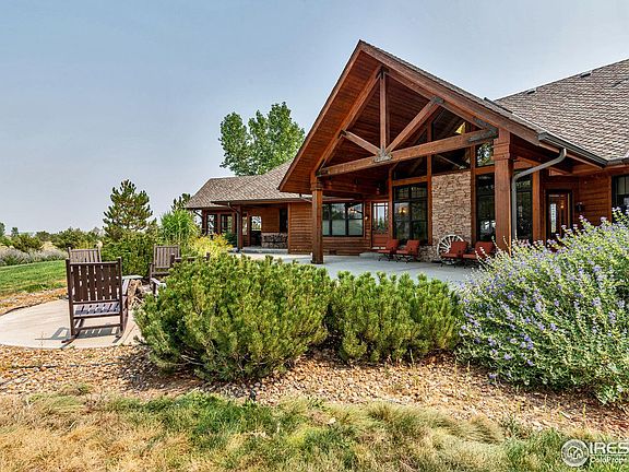 Stunning and very private luxurious living in this CUSTOM built and professionally designed executive ranch style home amazing views multiple patios for outdoor living 120X80 indoor arena pipe outdoor arena/7 stall barn complete with apartment tack room/feed/wash area/hay storage/round pen on 160 acres live water from box elder and horse creek both meander through the property mature trees fenced pastures hay production and abundant wildlife make this a one of a kind!Located just minutes to DIA