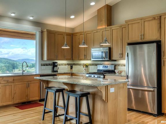 Accepted Offer with Contingencies. Enjoy gorgeous sweeping views of the valley to the Coast Range and Cascades. Immaculate single story 2219 sq/ft constructed in 2013 w/ an open floor plan. Easy healthy living in this super energy efficient home on 4.92 acres. This gorgeous 3 bedrm, 2.5 bathrm house has granite counter tops, gas stove, rustic maple floors, gas fireplace. Heat recovery ventilation, grge roof prepped for solar panels. Undrgrnd sprinklers & covered patio in front & back of house. Handicap accessible w/ 3-car, 1092 sq ft garage!