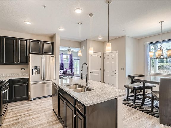 Welcome to the desirable Wheatlands Villas! This gorgeous townhome boasts a spacious and functional main floor layout, featuring a stunning kitchen with modern appliances, a cozy dining room, and a large walk-in laundry room for your convenience. Relax in the comfortable living room, complete with a gas fireplace and access to your private patio, perfect for entertaining guests or enjoying a quiet night in. The main floor also features a luxurious primary bedroom with a walk-in closet and a 5-piece en-suite bathroom, providing you with the perfect retreat after a long day. Upstairs, you'll find two additional bedrooms, a full bathroom, and a loft bonus room that can be used as an office, workout area, or additional entertainment space. This home is equipped with all the modern conveniences you need, including USB outlets and wall-mounted pre-wire TV outlets in both the living room and loft areas. With its prime location, you'll enjoy easy access to all the shopping, dining, and entertainment options at Southlands mall, as well as nearby restaurants and a Dine-in movie theater, all within walking distance! As part of the Wheatlands community, where you'll find an abundance of amenities to enhance your lifestyle. The Wheatlands Park & Recreation Center offers an outdoor pool, an outside patio area with grills, and a children's playground. In addition, residents have access to the Wheatlands YMCA of Metro Denver, a state-of-the-art wellness center that promotes total health and well-being through a range of programs and services. With a gym, Spirit, Mind and Body programs, Nutrition, Health and Wellness Programs, Youth Academic Readiness Program, and Out of School Time & Y Academy Programs, there's something for everyone. Plus, with a paid membership, you'll have access to any of the metro Wellness Center locations, as well as live virtual fitness classes at denverymca.org. Come and discover all that the Wheatlands community has to offer!