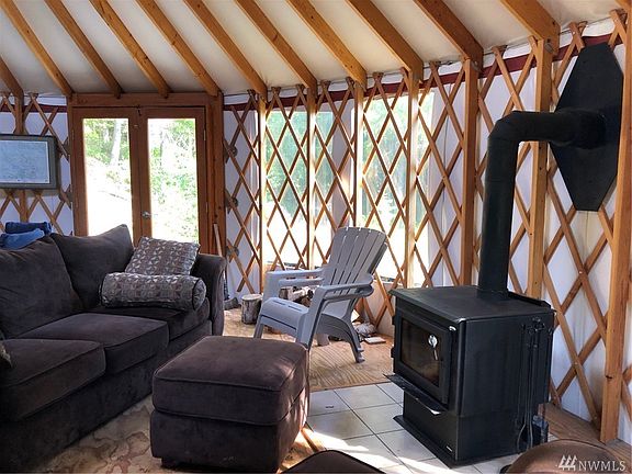 Looking for off the grid acreage with wildlife, timber, mountain views, 200 miles of snowmobile trails. Plus solar power, well, septic system and a 600 Sq. Ft. Yurt with sleeping loft, kitchen, living room, bedroom, bathroom, hot water. Modular shed with extra bathroom. Solar panel on roof.