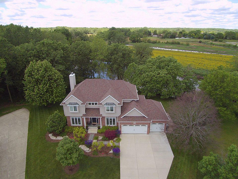 Enjoy peace and tranquility at this stunning oasis! Vacation at home in this incredibly rare beauty on 1.6 wooded acres overlooking the Dupage River - your very own private kayaking and fishing spot! This riverfront home was designed to take full advantage of the beautiful river views and the gorgeous sunsets every night to the west/northwest. These spectacular grounds with mature and varied trees and an abundance of wildlife and birds offer a majestic, private setting that is hard to come by. The entire home has been freshly painted in a neutral color, and offers white clad trim and 6 panel white doors with updated black hardware. Two story foyer welcomes you into this traditional layout with living room on one side and separate dining room with french doors on the other, both with beautiful large bump out windows that allow tons of natural light. Family room offers floor to ceiling gas fireplace and stunning views of the Dupage River. The kitchen is finished with hardwood floors, white cabinets, hard surface countertops, pantry, expansive breakfast bar and new stainless steel appliances. Main floor laundry has access door out to full deck in backyard. Master bedroom features tray ceilings adjacent sitting room (that could be turned into a closet) and upscale master bath. The master luxury bathroom is a dream with double sink vanity, free standing tub, walk-in closet, stunning walk-in custom tiled double shower, and heated tile floor. The full finished basement provides great entertaining space with bar and fireplace. Full 5th bedroom with egress window and closet and attached full bathroom would be a great in-law suite. A /C and furnace replaced in 2019. Septic pumped 6 years ago. Hot water heater 2018. Radon mitigation system. New roof in 2013. The sellers are not required to have flood insurance.