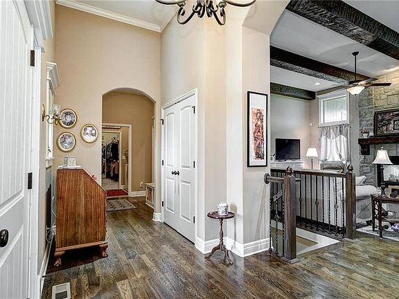 Fall in love with this exquisite Emery Reverse built by James Engle. From hand scraped beams in the great room, beautiful ceiling detail in the dining room to the custom hood vent in the kitchen, this home wows! Kitchen boasts granite, stainless appliances and huge walk-in pantry. The main floor master suite has walk-in shower, double vanity, jetted tub and large closet connecting to the laundry room. Covered deck overlooking green-space, walkout lower level with large patio. Must see!