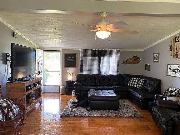 Manufactured home on permanent foundation. New central heat and air system. New metal roof. Open concept design with living/kitchen/dining combo. Includes kitchen appliances. Laundry room includes washer and dryer. Master bedroom has walk in closet and big master bathroom. Huge two door detached garage. This property offers 2 acres of nice flat land, with a concrete basketball court in the back yard your family will enjoy the spacious back yard, perfect for family gatherings! Come take a look at this beauty!