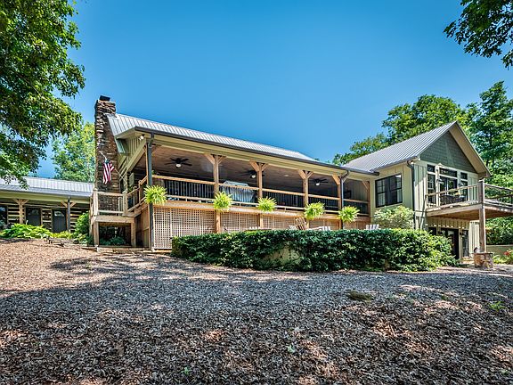 Welcome to the privacy of 39+ acres in the North Georgia Mountains with 12+ acres in open fields and the remainder heavily wooded. The custom crafted home is a series of antique structures centered around a log cabin circa 1840. This private setting lends to the peace and tranquility of your dream location. Relax on one of the covered porches, decks, patios, by the firepit or under the 30 X 40 pavilion with dock and enjoy the view of the acre lake. While nestled near the wood burning fireplace you will love the rock work that was constructed from two homestead chimneys discovered on the property. The dog trot storage barn is believed to be a Cherokee Indian cattle barn and was relocated from Winder, GA. The attached Guest House was constructed from antique logs that originally came from an old North Carolina barn. Handrail and railings in the foyer and loft were made from the ceiling rafters in the original cabin. The 40 X 28 workshop was built from pine trees harvested and milled by the family and complete with reload room and woodworking equipment. This property offers a total of 4 bedrooms(2 in main & 2 in guest cottage), 3.5 baths(2.5 in main & 1 in guest cottage), gourmet kitchen, granite counter tops throughout, hardwood and tile floors, Jeld-Wen windows and doors, heated master bath floor, whole house generator, water filtration system, remote control front gate and garden area with irrigation. Conveniently located one hour north of Atlanta, 30 minutes from Gainesville, Dahlonega, and Helen. Truly a must see! Very private and secluded, ideal for gatherings for family and friends or as Event Venue. Don't miss narrated video attached!