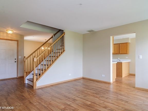 Welcome home to a beautifully light and bright town home in Lakewood valley. Brand new luxury vinyl plank flooring through out. Main floor living room with fireplace and a separate dining room. Eat-in kitchen with sliding doors to patio. Upstairs you will find two generous sized bedrooms, both with walk-in closets. Main bedroom with vaulted ceiling and attached bathroom. Plenty of storage space on both levels. Attached extra deep 1 car garage. Enjoy the convenience of second floor laundry. District 308 schools. Walking distance to Lakewood Valley clubhouse and swimming pool. Floors (2020) Furnace (2019) Water heater (2019). Quick close possible.