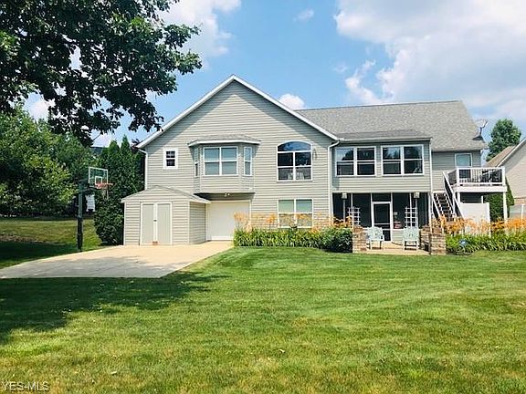 Great location for this 4 bedroom 3 bath custom built ranch with walk-out basement in Hoover Estates. This one is better than new so pay attention to detail with all of the updates/upgrades. This one is sure to please with too any amenities to list all. First floor offers an open concept floor plan with master suite on one side and 2 other bedrooms and full bath on the other. Master offers large walk-in closet and new master bath in 2019 with granite counters, tiled shower and double sinks. Large kitchen w/ island that looks out to sun-room and a three season room that was new in 2006. Three season room overlooks the private backyard with slider that leads to a new composite deck in 2013. Basement is fully finished with nature stone flooring throughout. Basement offers 4th bedroom, full bath and third car garage with workshop. Basement walks out to screened in porch with hot tub. This one is located on one of the best lots in Hoover Estates. It is on a cul-de-sac with a private backyard that backs up to pastures and cornfields. This also has a huge backyard with access to the third car garage, storage shed and basketball court. Some updates include roof/siding 2013 and furnace and A/C new in 2019. House is equipped with a whole house vacuflo system. Lawn Sprinkler in front and side yard. Lake Local Schools. This one owner home has too many updates to list all and will make a great house to call home.