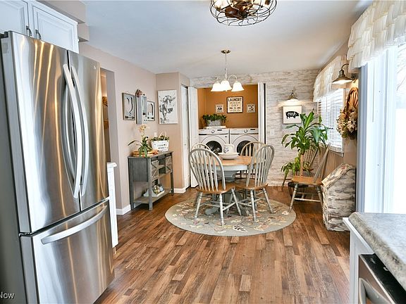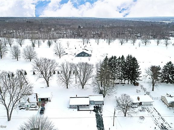 Heat up these cold winter days with the warm vibes from this beautifully updated Bazetta home! Offering a desirable two-bedroom ranch layout with provisions for a third lower bedroom, this residence has everything you’ve been looking for. Standing out, the endearing, gray exterior is quick to draw you near, taking in a brick walkway and picket lined, covered front patio for spring days to come. A must-see finished breezeway connects the attached two car garage with a perfect lounge and casual entrance. Through the front door, a captivating living room showcases its large picture window, carpeted floors and its rustic accent wall as bespoke lighting presides overhead. The main hallway separates the nearby kitchen where lovely, eat-in dining veils the hidden first floor laundry found behind bi-fold doors. Sunshine cascades across the hardwood styled flooring, lighting the faux-stone countertops and glass tiled backsplash. Recessed overhead lighting joins the stainless appliances to brighten the room. Down the hall, a pair of spacious first floor bedrooms branch away with plush carpets and ample footprints. They are joined by a charming full bath and its updated vanity. Downstairs, provisions for the third bedroom outreach into an excellent family room with a built-in entertainment center. Nearby, a second full bath brings an elaborately tiled shower. Opposite, shop and storage space complete the floor. Many, many updates include: Covered front porch & brick sidewalk; garage door & opener; Ring security system; landscaping (including filling ditch, removing overgrown bushes, grading and planting bushes); expanded kitchen (w/ new plumbing, appliances, gas line to range & breezeway; storm doors & metal exterior doors; windows (except the picture window); light fixtures; vanity, mirror & fixtures in primary bath; radon mitigation system; hot water tank; self-contained whole house water filter & RO system to kitchen sink & fridge; blinds & flooring.